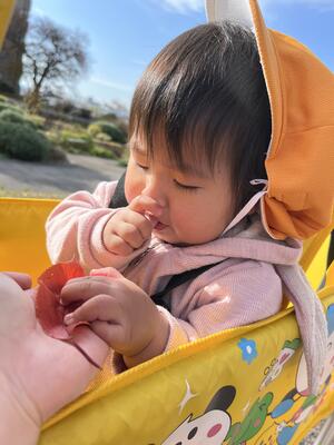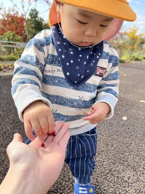 初めて見る木の実に興味津々で、しばらく手に持ってご機嫌に歩く姿も見られました🧡