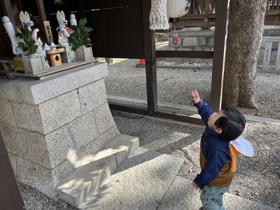 青色の点滅灯が光るカッコいい車を見て、大喜びの子どもたちでした❗