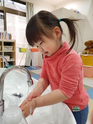 手を洗った後は、みんなが楽しみにしている給食です🍴