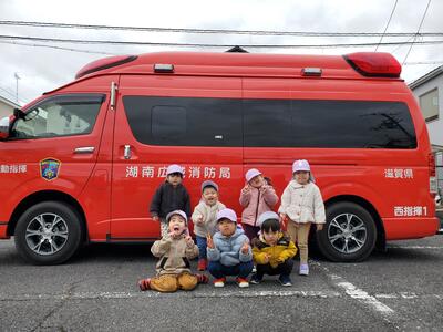 今週は避難訓練で、消防指揮車を見せていただきました🚒