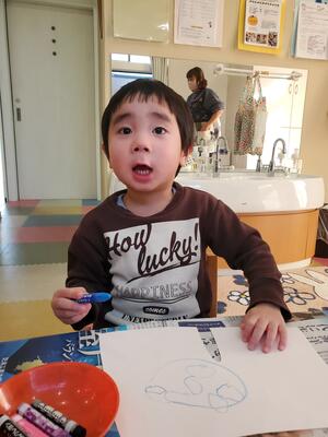 描き終えると、保育者に見せながら