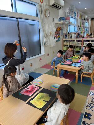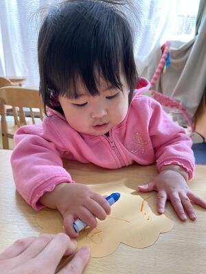 次は、鬼さんに付ける髪の毛をクレパスでお絵描きします✍️