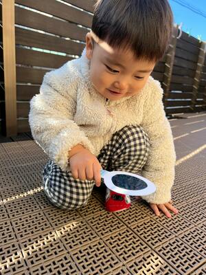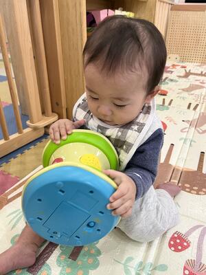 音の鳴る玩具では、「これはどうやって鳴るのかなぁ💭」と不思議そうに見ていましたよ🌼