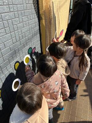 「どこに貼ろうかな?」と考えながら、好きな場所に一枚一枚丁寧に貼っていた子どもたちでした😊