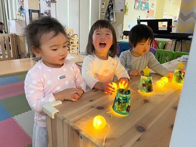 お昼寝前にみんなで作ったキャンドルに明かりを灯しました🕯
