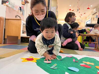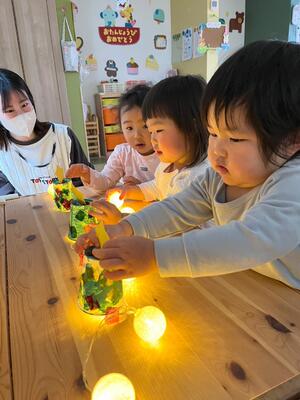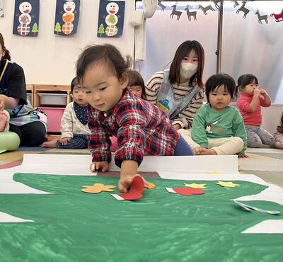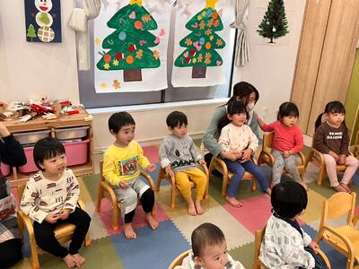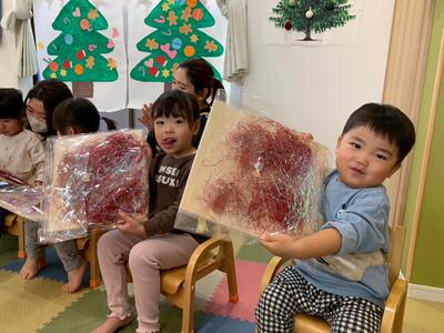 絵本や制作あそびを通して、「クリスマス!」「ツリー!」など保育者にお話をしながら、更にクリスマスに期待を持つことができた子どもたちでした🌟