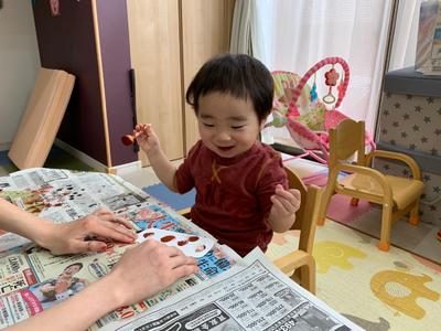 続いて、黒い絵の具で指スタンプ🤚
