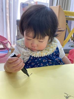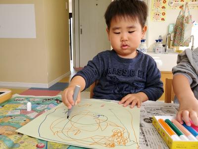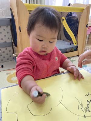 くじら組さんでは、豆まきに使うマスを作るため、画用紙に自由にお絵描きをしてもらいました✏️🌟